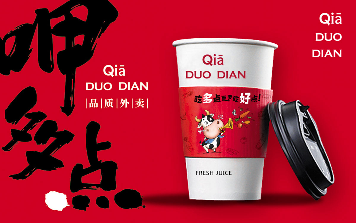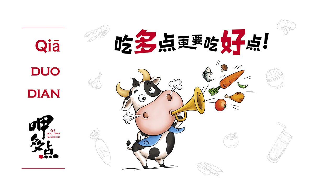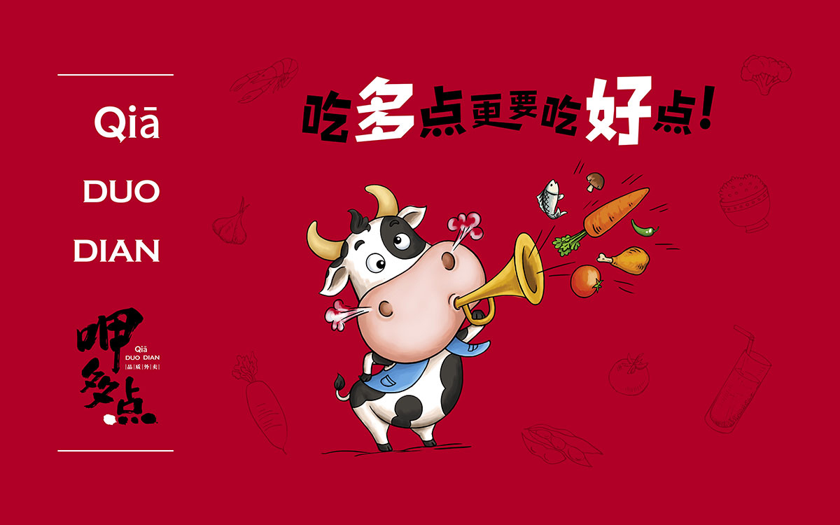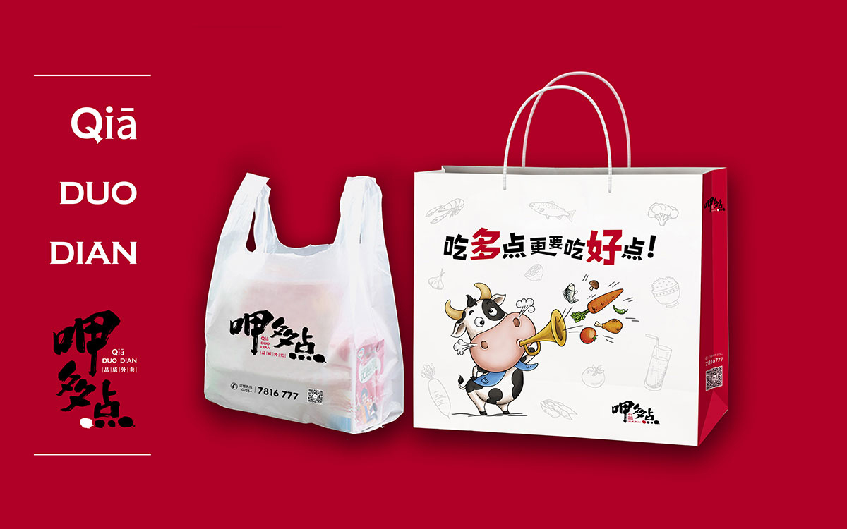 呷多點(diǎn)外賣,是由咖叻越南餐廳投資的純線上時尚外賣品牌,針對城市中年輕、高端消費(fèi)白領(lǐng)。形象中的奶牛形象風(fēng)趣可愛,表達(dá)了品牌風(fēng)趣、美味、時尚、健康的風(fēng)格。中世銳意設(shè)計2018年為呷多點(diǎn)全程打造項目品牌形象。此設(shè)計項目獲得了第三屆全國平面設(shè)計大獎賽銀獎。