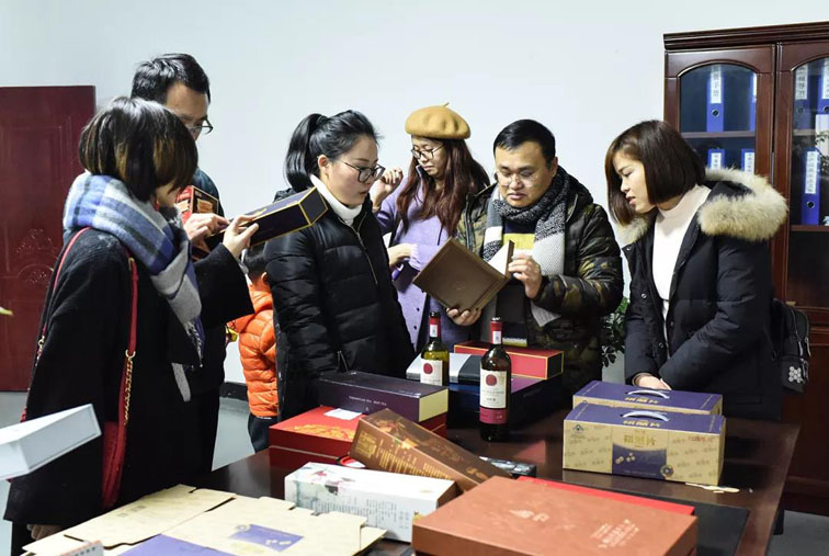 ▲ 新粵欣包裝有限公司易總與中世銳意設(shè)計團隊合影